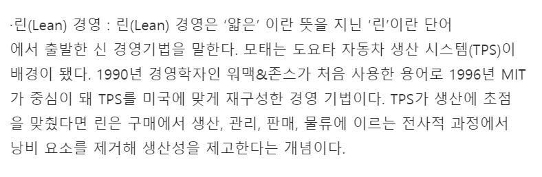 우선 린 경영에 대하여 짚고 넘어가보자.